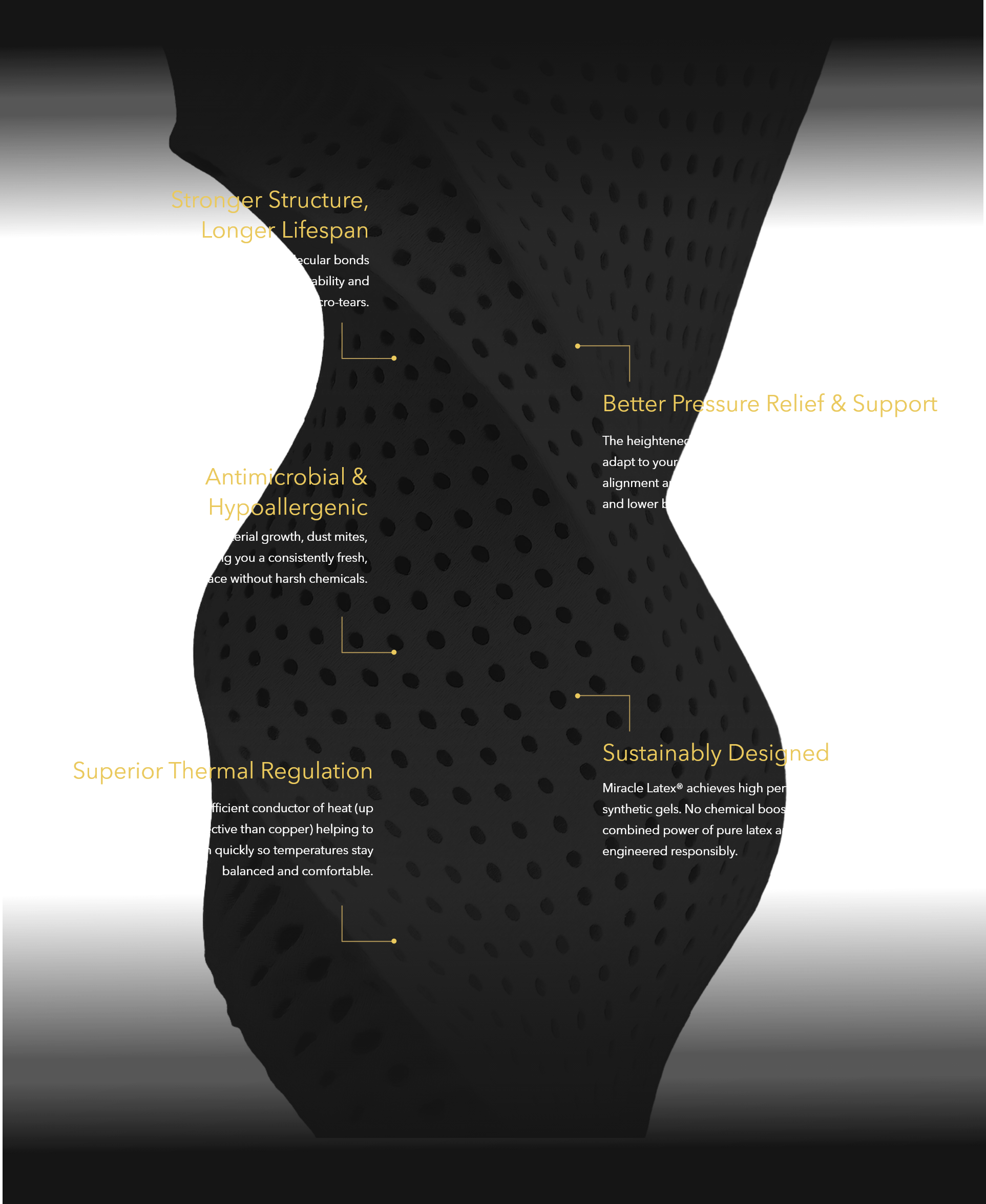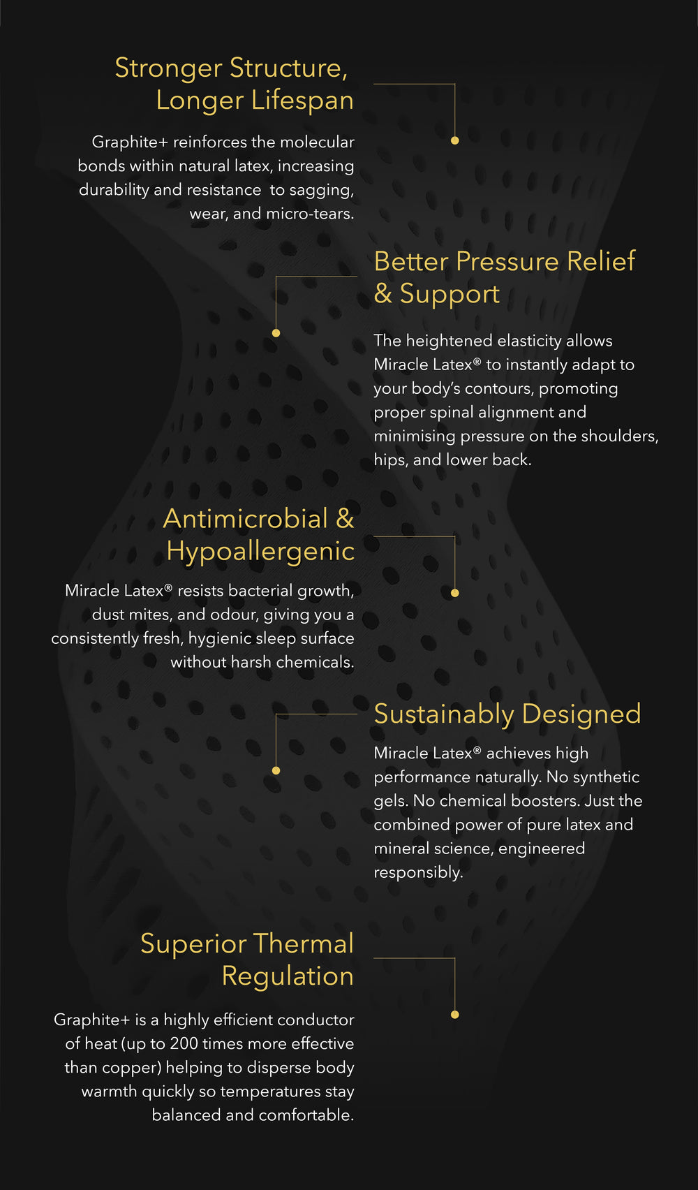 Miracle Latex® is Getha’s exclusive latex formulation enhanced with Graphite+, a natural thermal compound that transforms the way latex performs. The result is material that is stronger, cooler, and more resilient, designed to cradle you in effortless comfort, night after night