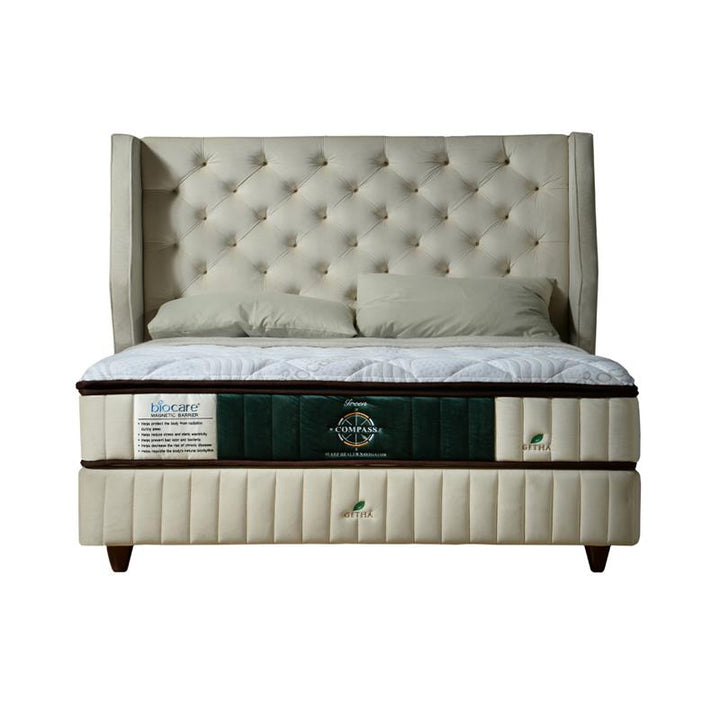Getha Compass Green mattress is Ultra Soft, designed to give a superior plush feeling for your sleep. Getha's Biocare electromagnetic shield brings to you a magnetic barrier with nano technologic yarns against electromagnetic radiation for a healthier quality sleep.